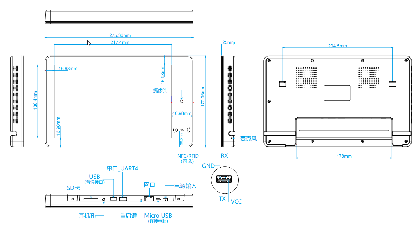 | NFC | NFC 13.56MHz,ISO14443A/ISO14443B/ISO 15693/Mifare classic/Sony felica |