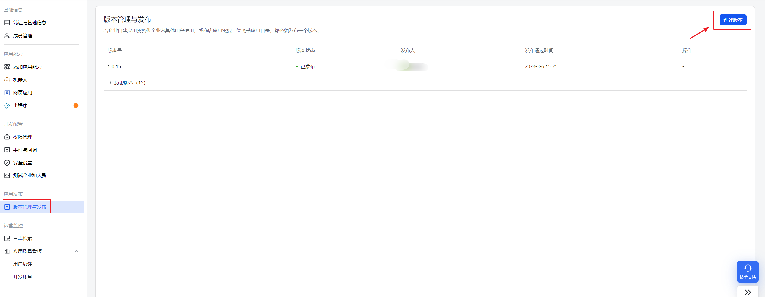 - 在【应用发布】--【版本管理与发布】模块点击【创建版本】按钮进入版本发布页面